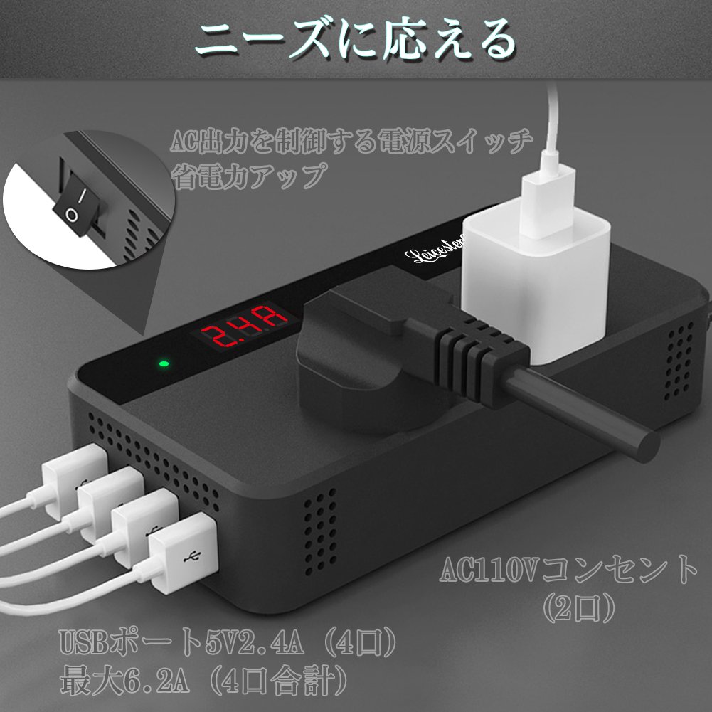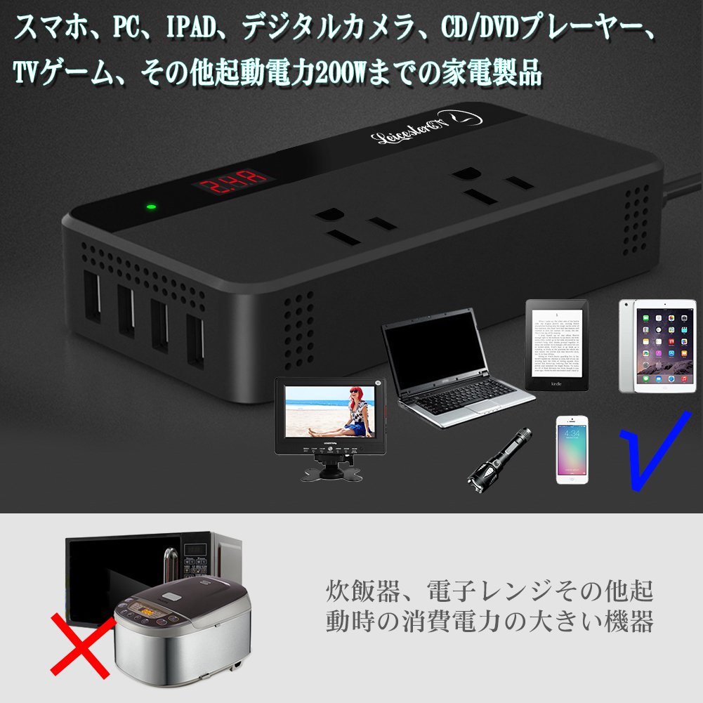 LST 200Wカーインバーター コンバーター 車載充電器 DC12VをAC100Vに交換 USB給電4口 AC100V電源2口 修正正弦波 シガーライターソケット コンパクト&シンプル (ブラック) ![]()